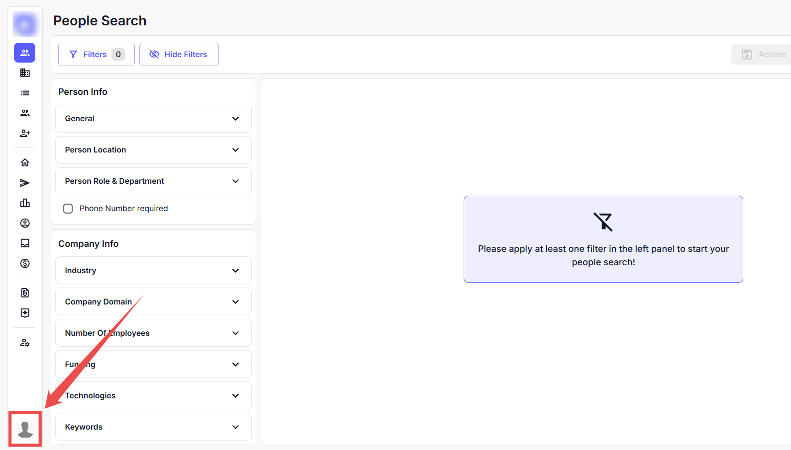 Step 1: Log in to your account and click the Account icon in the bottom left sidebar.
