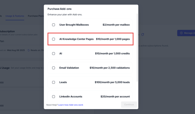 This new add-on enables users to expand their Knowledge Center capacity by purchasing additional page blocks ($10/month per 1,000 pages). The added capacity is reflected immediately and scales with user needs.