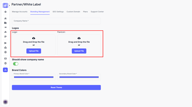 Upload your own files to customize how your brand is displayed to your users.
