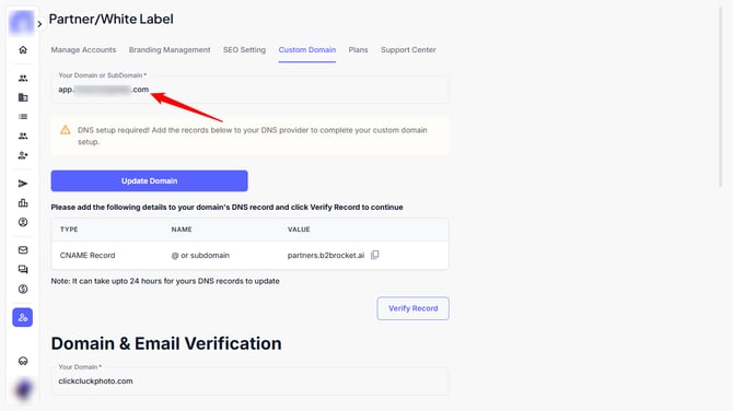 If you don’t want users to see “b2brocket.ai” anywhere, you can set up your own domain or subdomain: